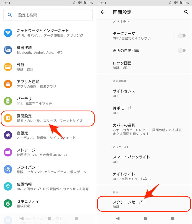 我们以 Xperia 10 II (Android 11) 的屏幕为例进行说明。