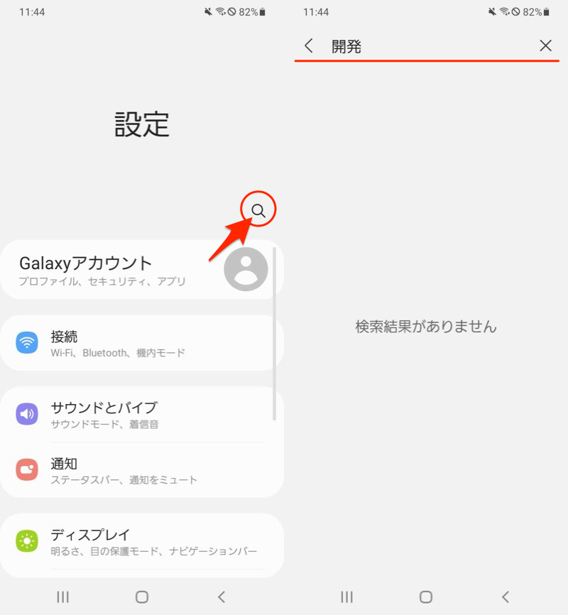 在 Galaxy A20 的设置屏幕上搜索但没有找到任何内容的示例。