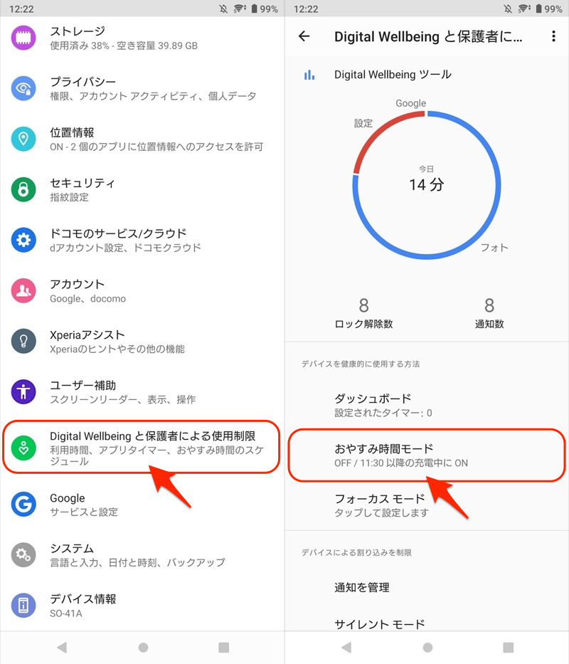 AQUOS sense3 示例。搜索“时钟”,您会找到菜单。