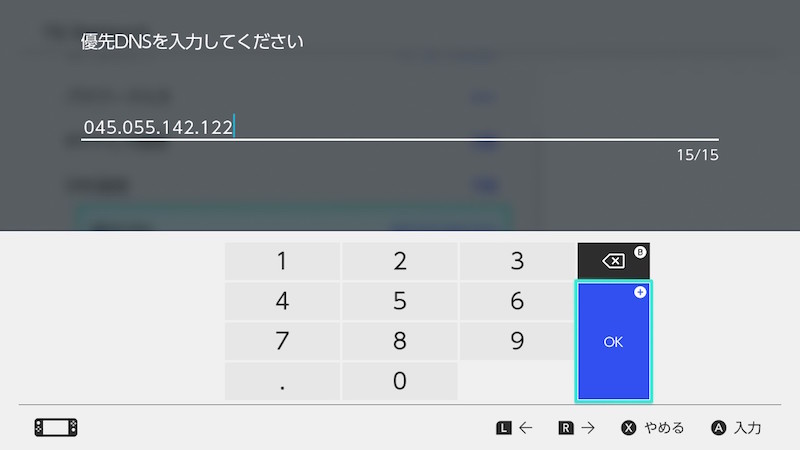 将出现 DNS 输入屏幕,因此请将其更改为以下内容。