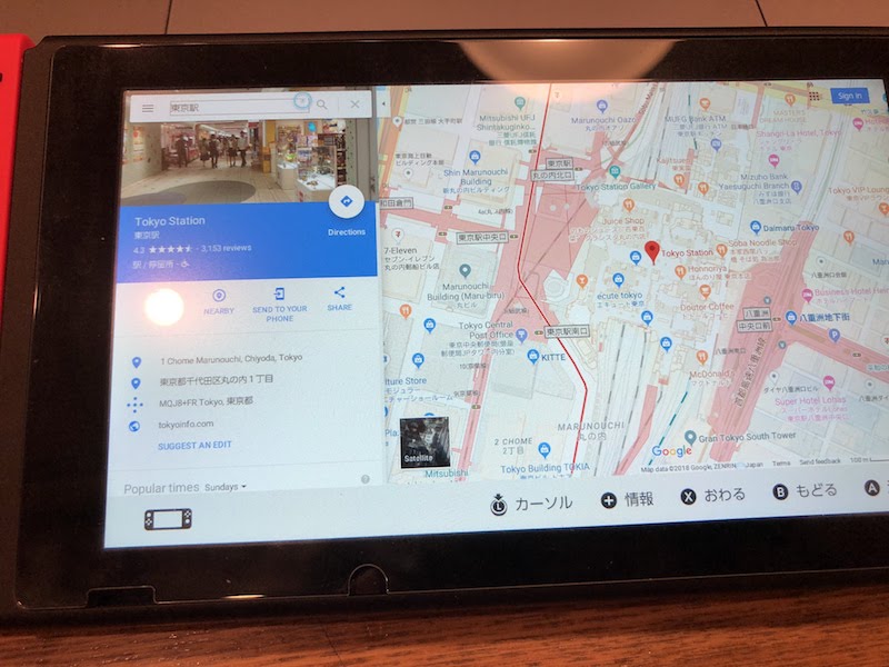 使用 Switch 浏览器搜索东京站周边景点的示例。