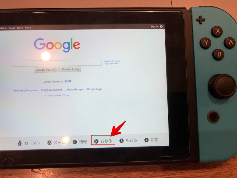 要退出浏览器功能,请按 Switch 上的“X”按钮,