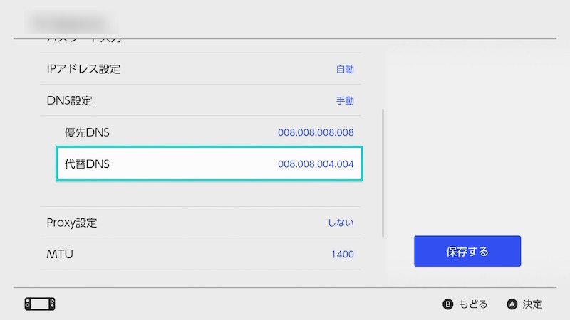 将出现 DNS 输入屏幕,因此请将其更改为以下内容。