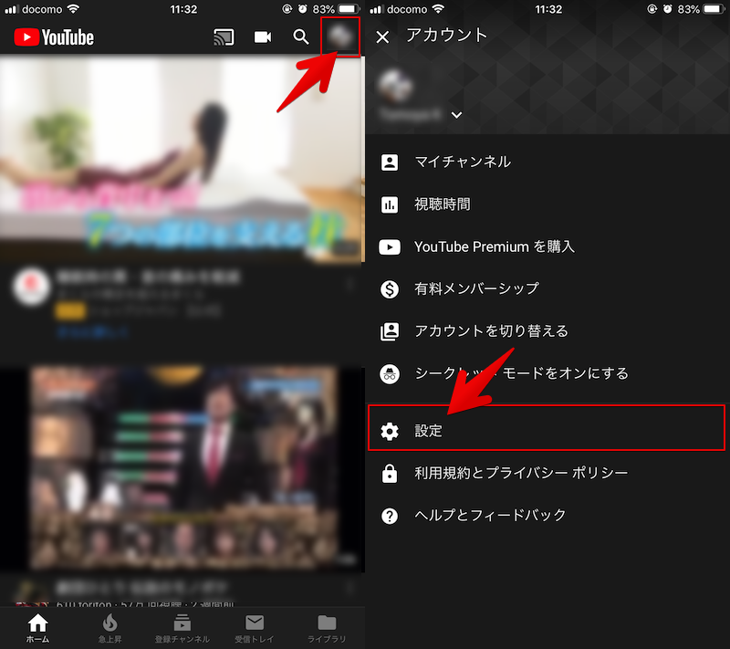 接下来,从智能手机上 YouTube 应用程序的帐户菜单中打开“设置”,