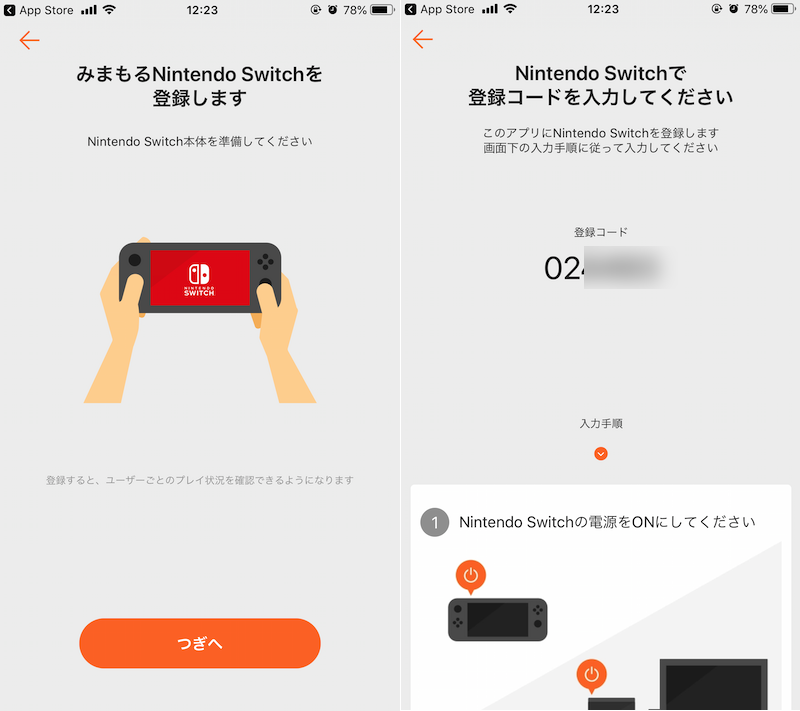输入“Mimamori Switch”应用程序上显示的注册码。