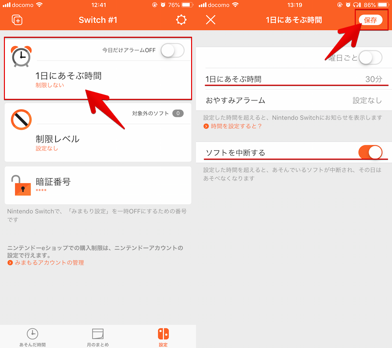 打开智能手机上的“Mimamori Switch”应用程序并进行限制 YouTube 的设置。