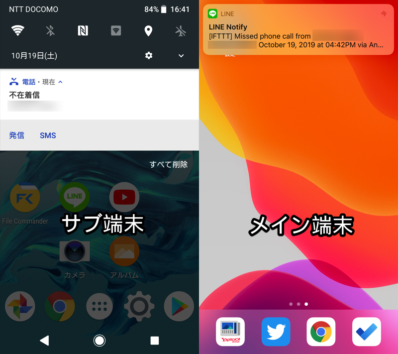 IFTTT触发的“Android电话”和“Android短信”只能检测Android上的来电(如果子终端是iPhone,则无法通知主终端)。