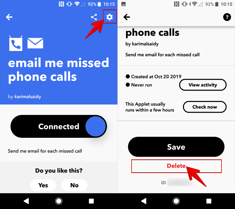 可以从设置菜单中删除 IFTTT 中设置的食谱。