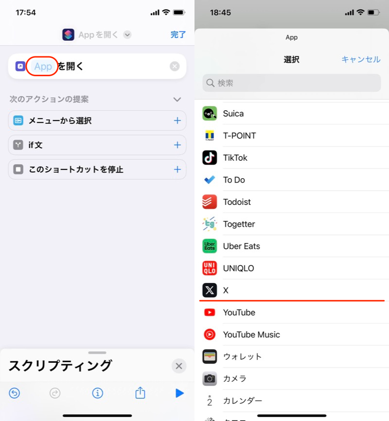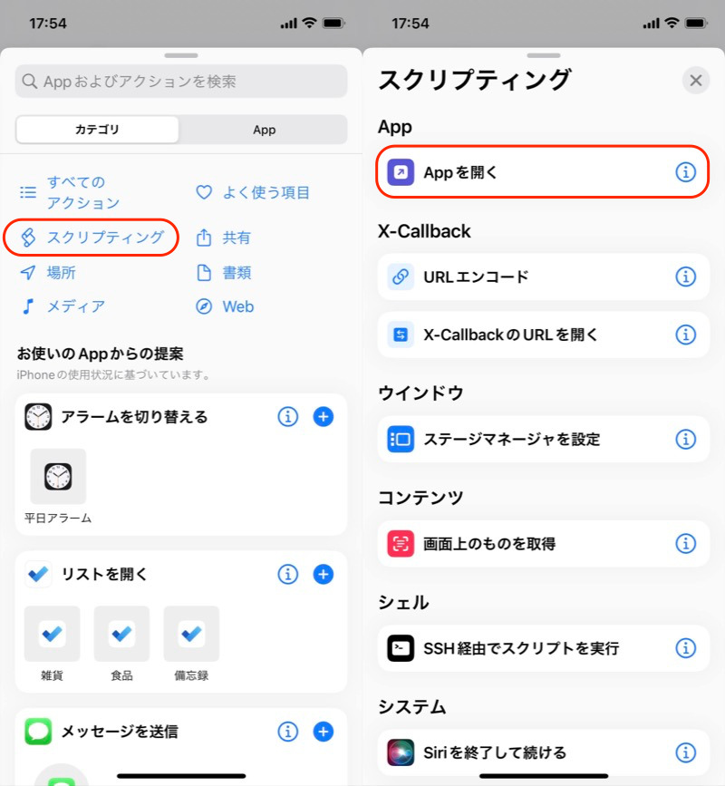 从“快捷方式”选项卡上的 + 图标,添加动作→脚本编写→打开应用程序我选择。