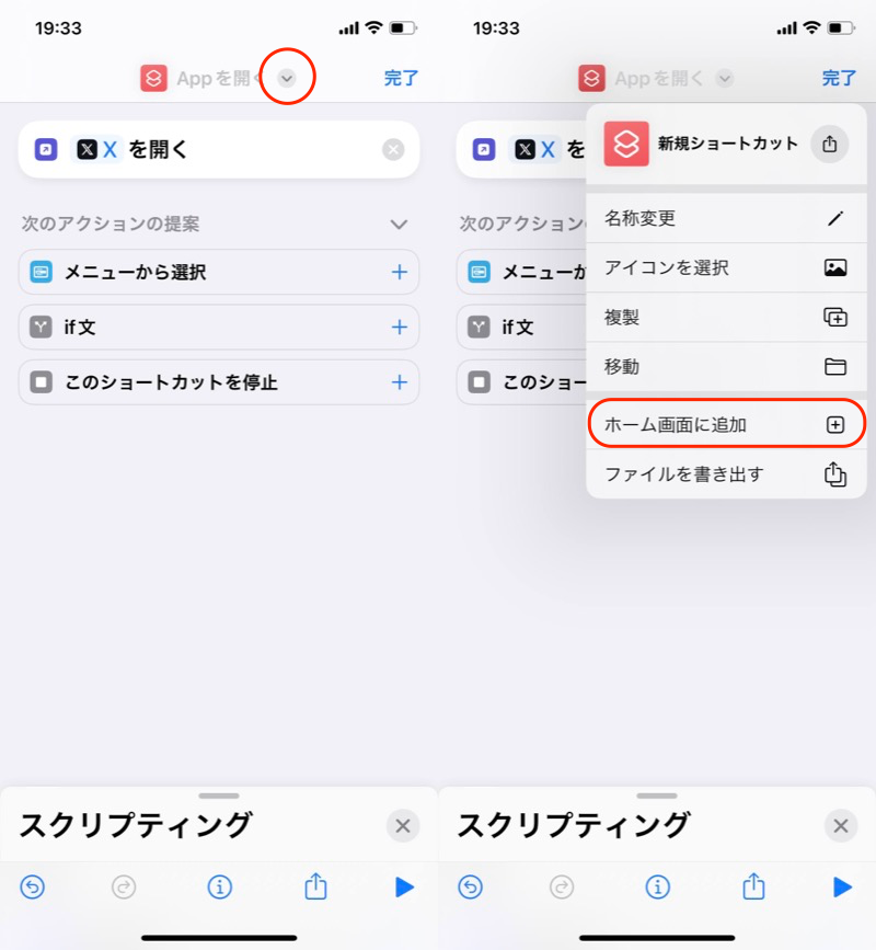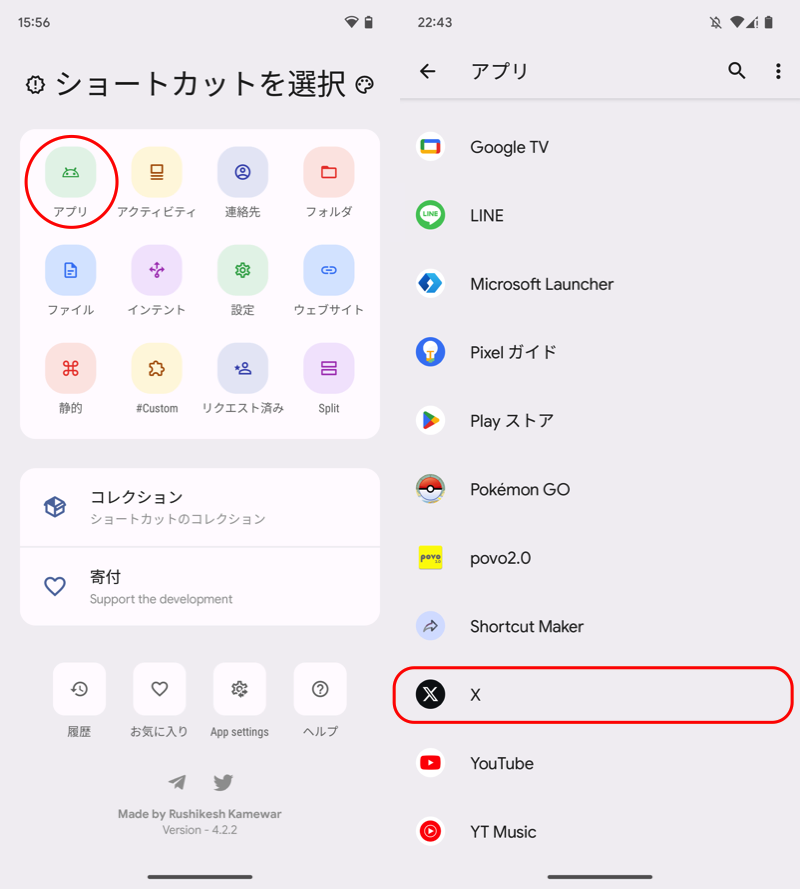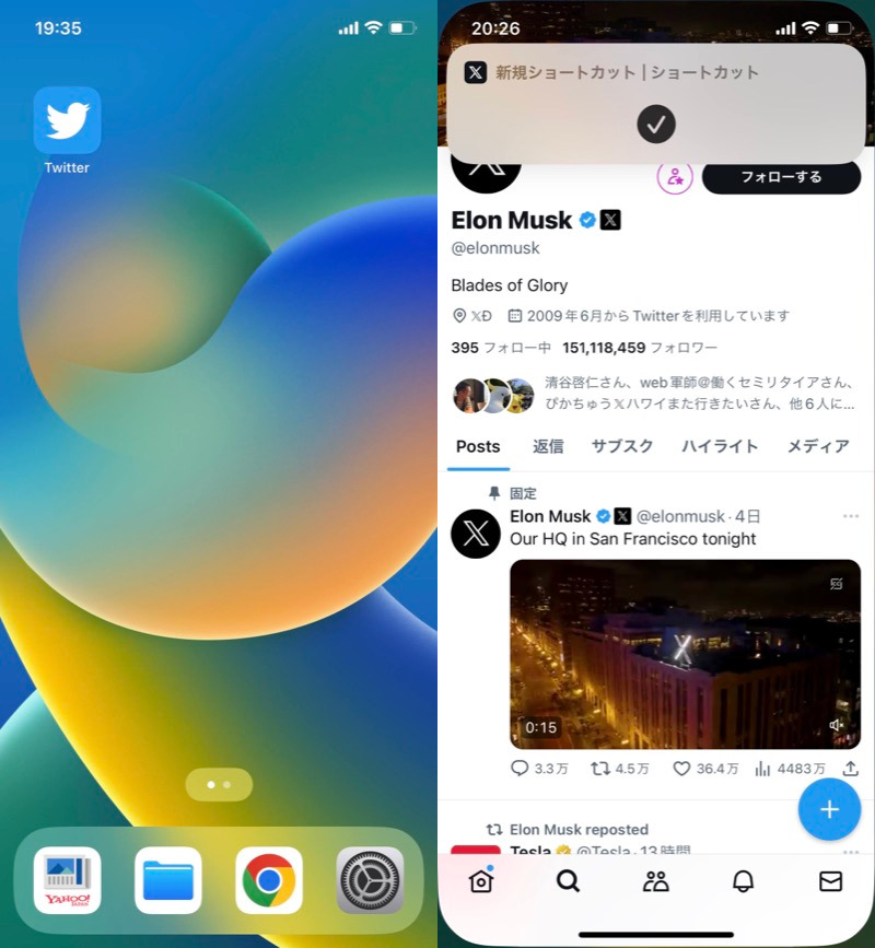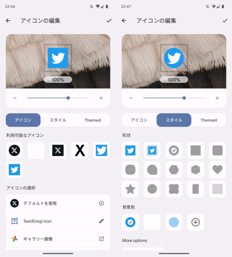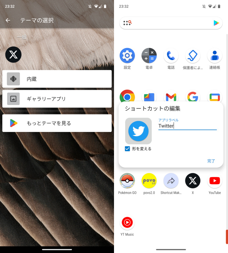 (左)创建快捷方式(右)添加原始 Twitter 图标