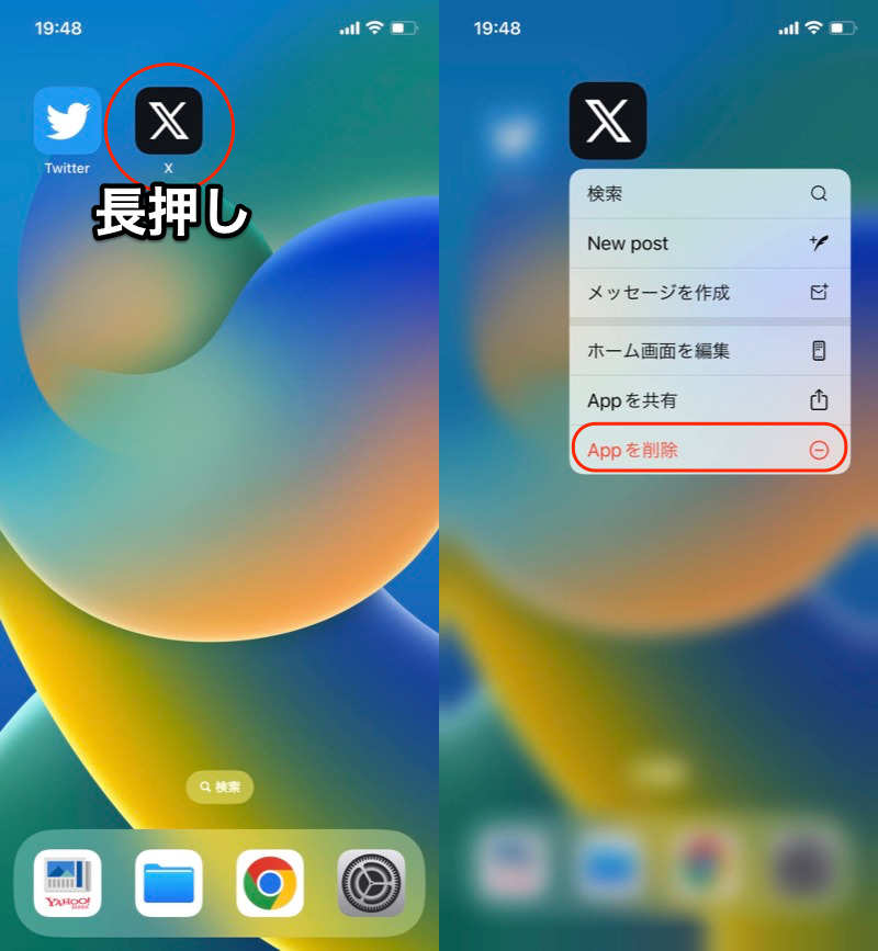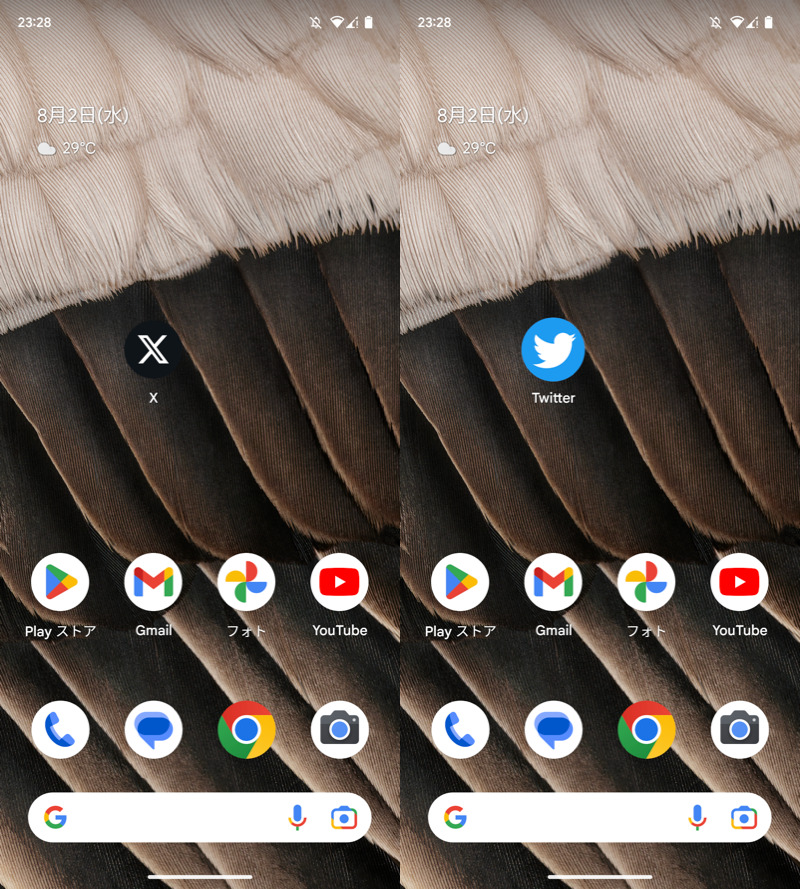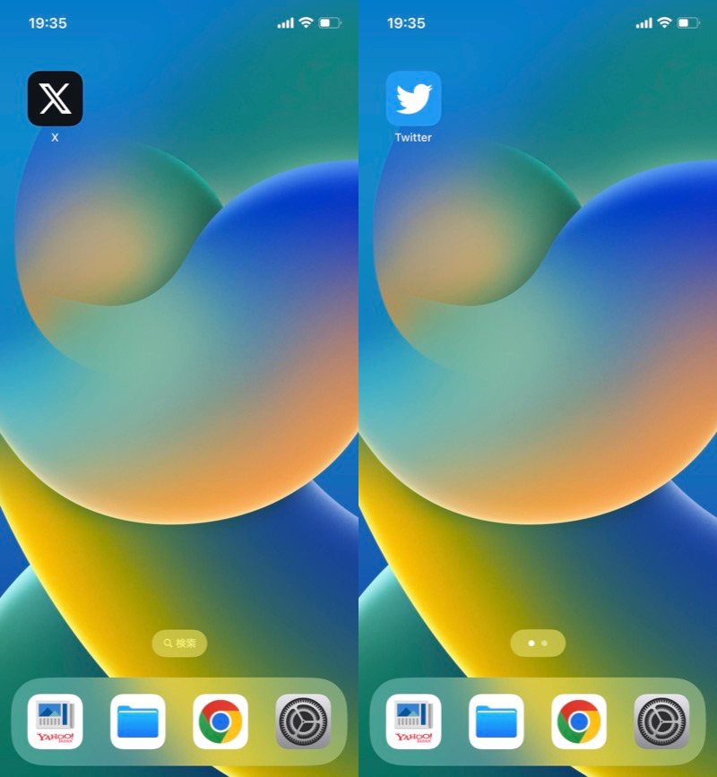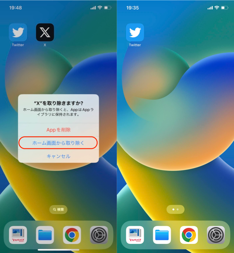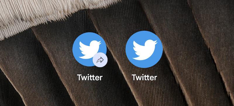 (左)从主屏幕中删除(右)仅显示蓝鸟 Twitter 图标