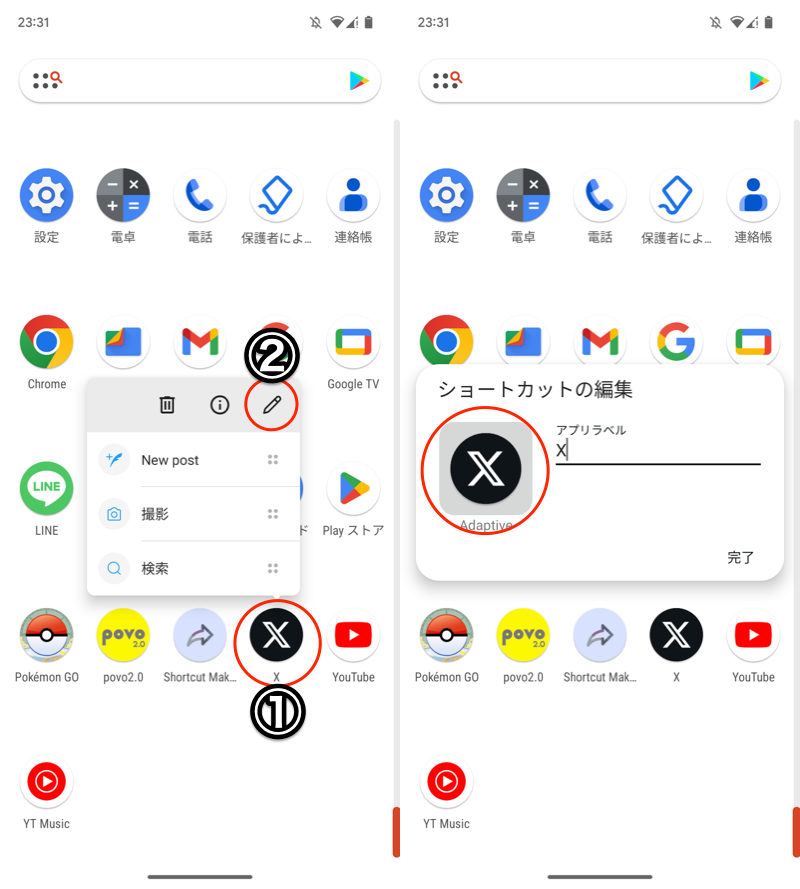 X 应用程序图标将保留,因此请单独删除它们。此外,应用程序抽屉上的图标无法更改。