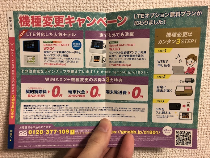 详细内容请参见相关文章【关于GMO Tokutoku BB模型免费更换活动的注意事项! WiMAX自动更新可能导致3万日元的机会损失] 进行了解释。