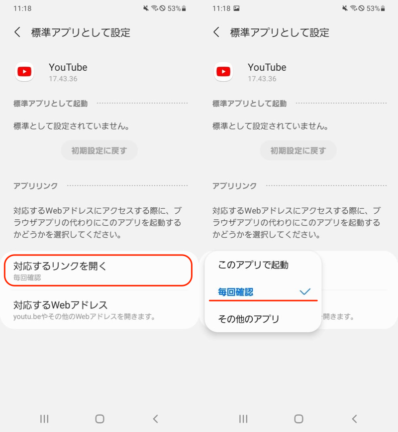 当您点击与YouTube兼容的链接时,您将每次都会显示哪个应用程序。