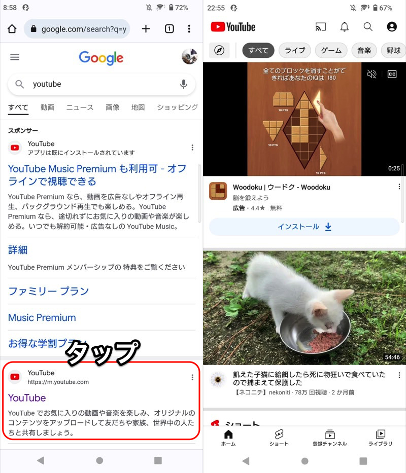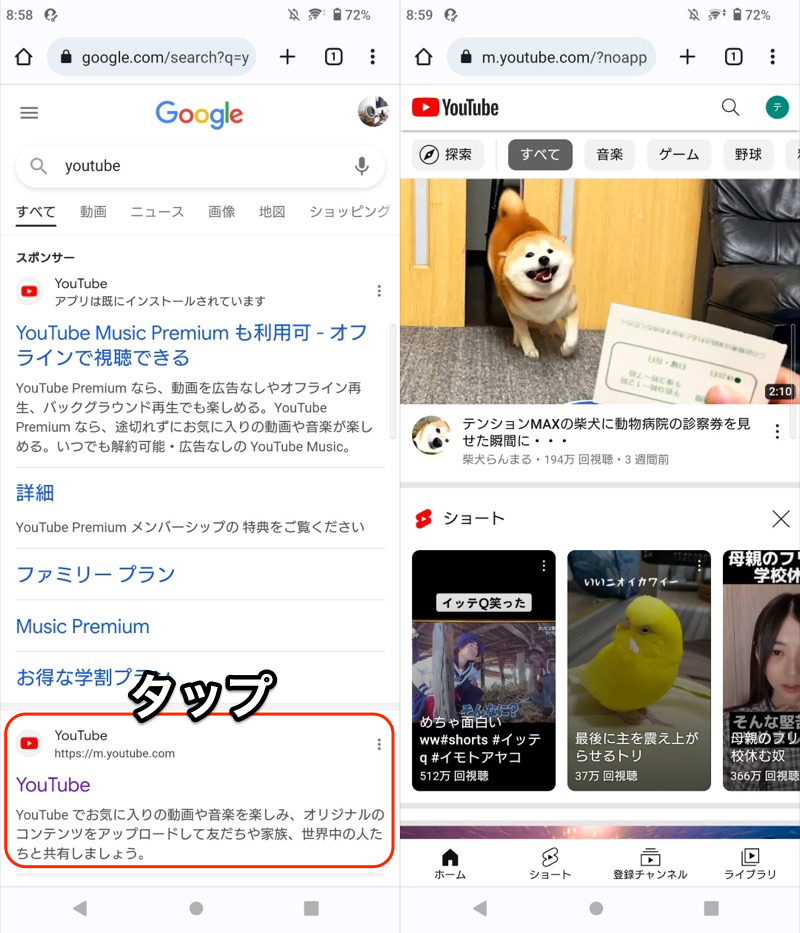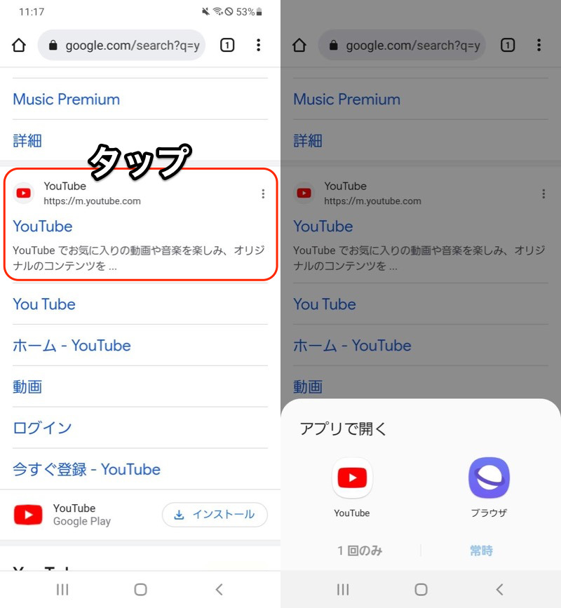▼示例2:使用YouTube应用重新打开YouTube的Web版本