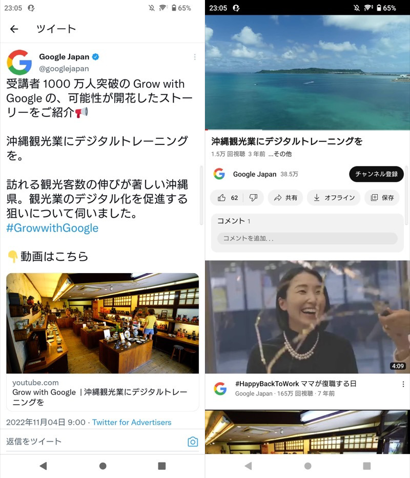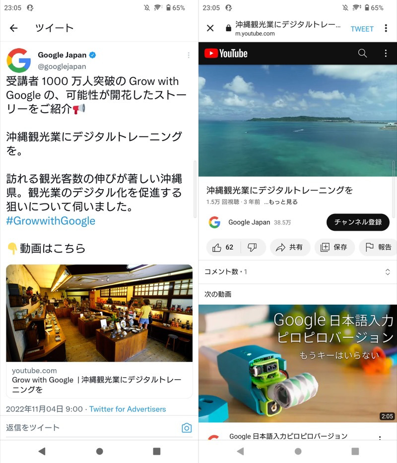 当您点击时,Twitter上的链接也将在YouTube应用程序上自动显示。