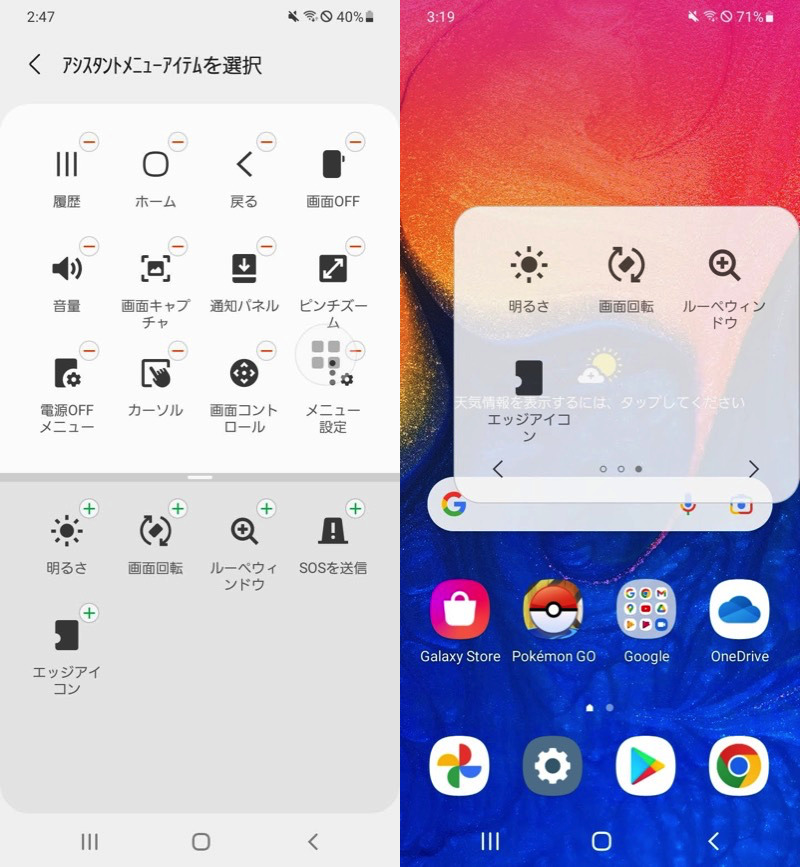Galaxy系列标准功能助理菜单,您可以在屏幕上显示虚拟按钮并使用类似于AssistiveTouch的功能。