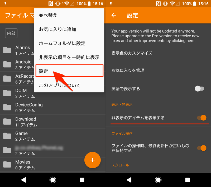 首先,准备一个文件管理应用程序并将其设置为显示隐藏的文件/文件夹。
