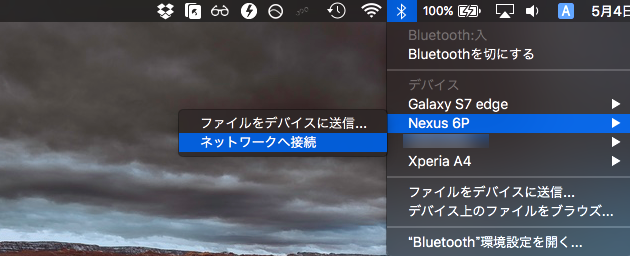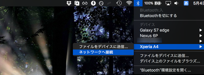 最后,从Mac端的配对蓝牙设备列表中选择Xperia并执行“连接到网络”。