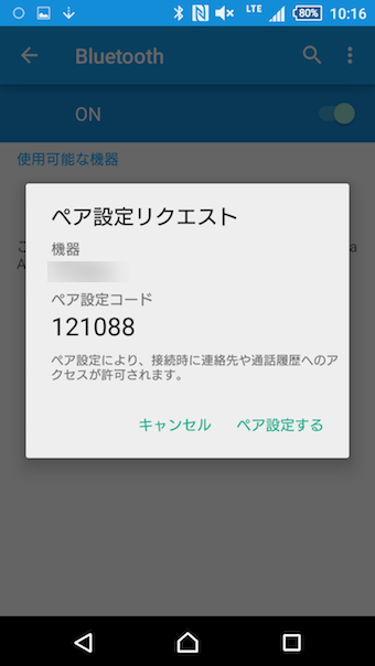 同时,Xperia 端会显示“配对设置请求”以及与 Mac 端相同的数字代码,因此选择“配对设置”。
