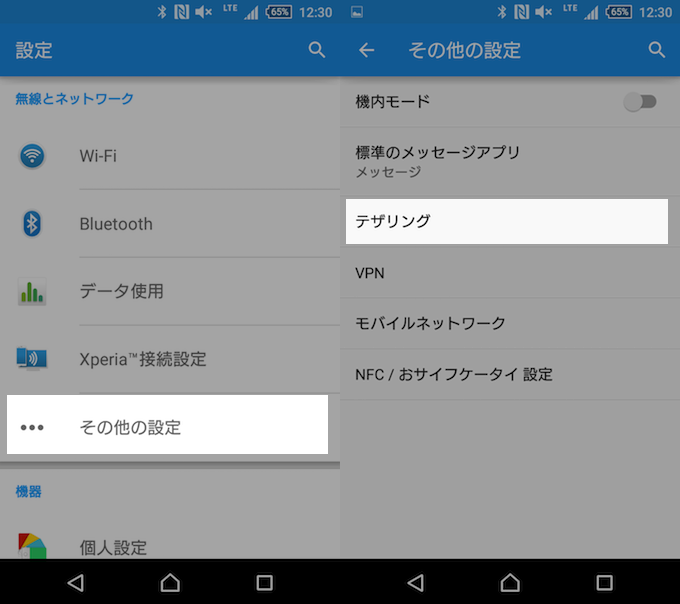 首先,在 Xperia 一侧,转到“设置”→“其他设置”,然后点击“网络共享”。