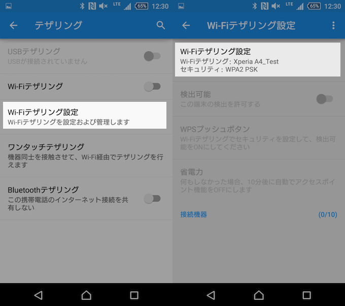 接下来,打开 Xperia 端的 Wi-Fi 网络共享功能。