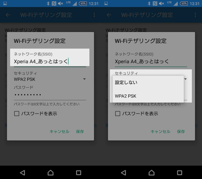 在这里,确定三点:Xperia Wi-Fi 网络共享的网络名称 (SSID)、安全类型和密码。