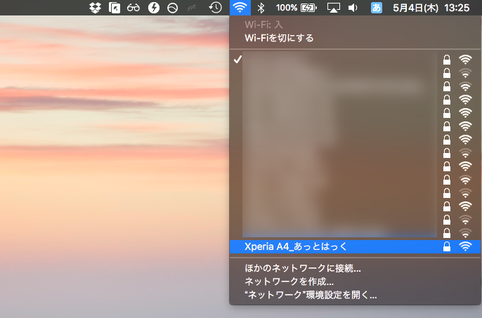最后,打开Mac端的Wi-Fi并点击Xperia网络名称。