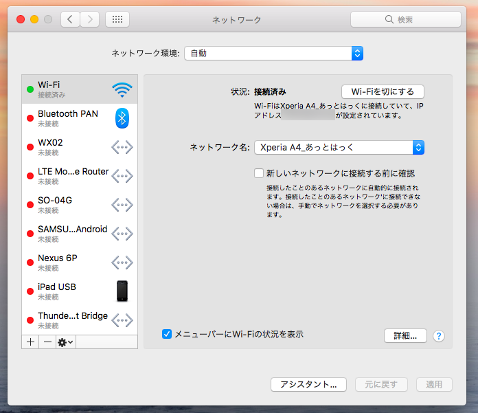 多于,[Android] 如何在智能手机和 Mac 之间进行 Wi-Fi 网络共享 [Xperia/Galaxy/Nexus]这是一个解释。
