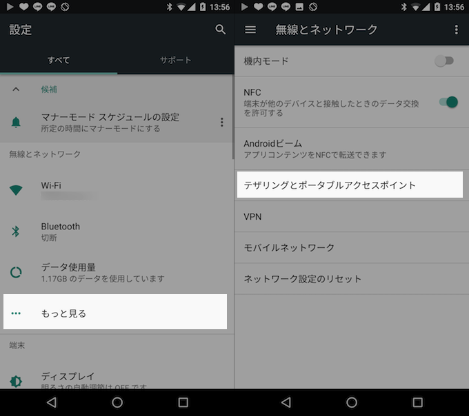 首先,在 Nexus 端,转到“设置”>“无线和网络”>“更多”,然后点击“网络共享和便携式接入点”。