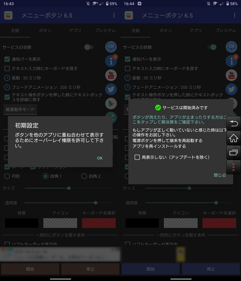 它不仅始终显示在主屏幕(左)上,而且始终显示在任何应用程序屏幕上(右)。