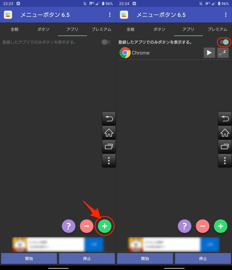 指定 Chrome 的示例。按钮在主屏幕等上消失。