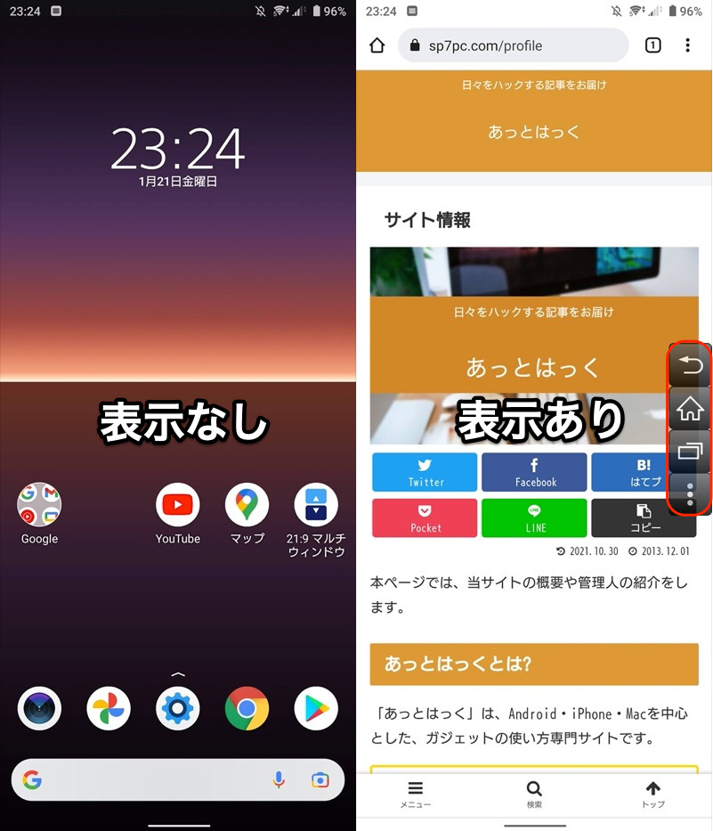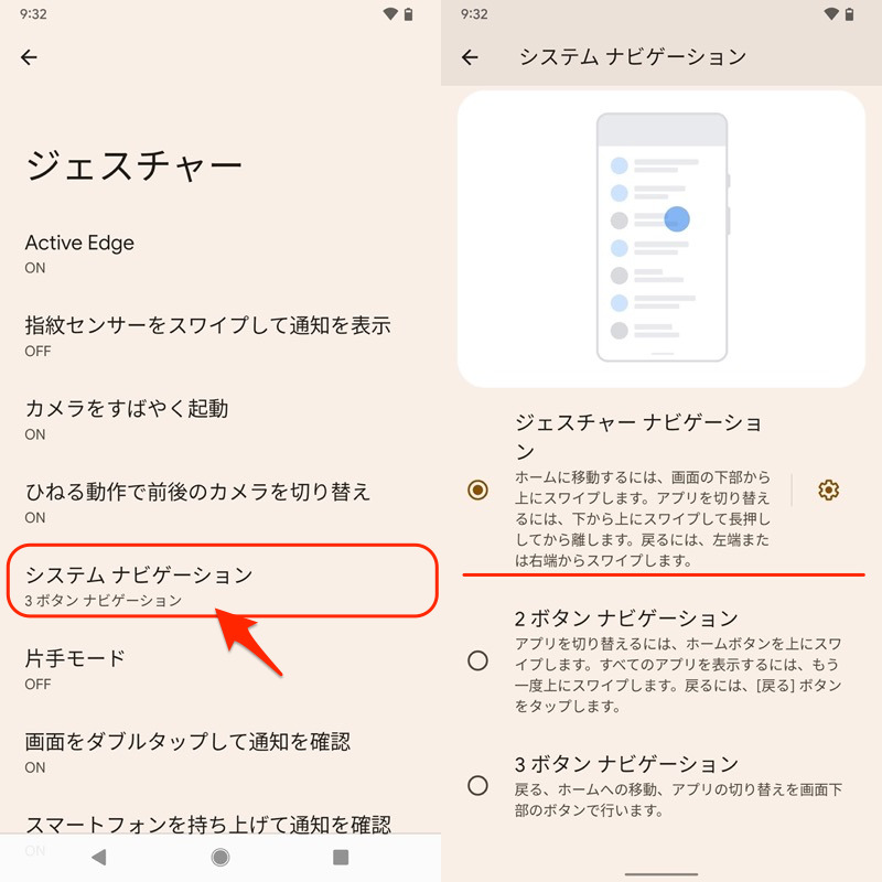 手势导航的详细规格请参见相关文章【如何在Android上使用手势导航!从智能手机底部滑动] 进行了解释。