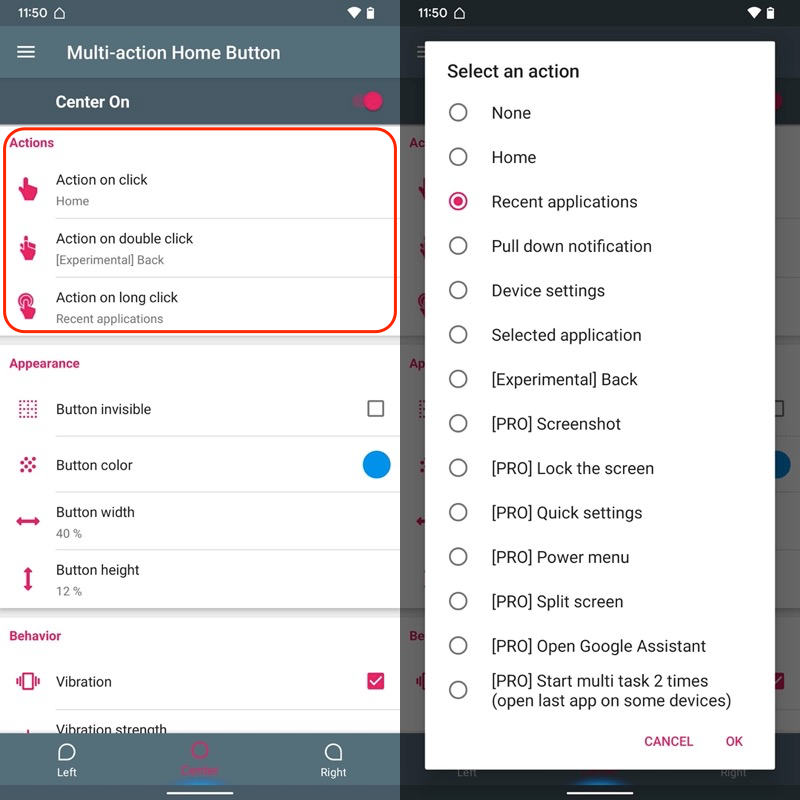 即使是免费版本,也没有广告,并且易于使用。如果您购买Pro版本,还可以在左右两端添加虚拟主页按钮。