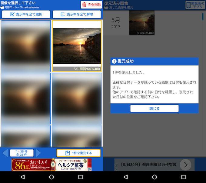 由于具有这种机制,您不仅可以具有备份,而且还可以在安装此应用程序之前还原您删除的均匀图像。