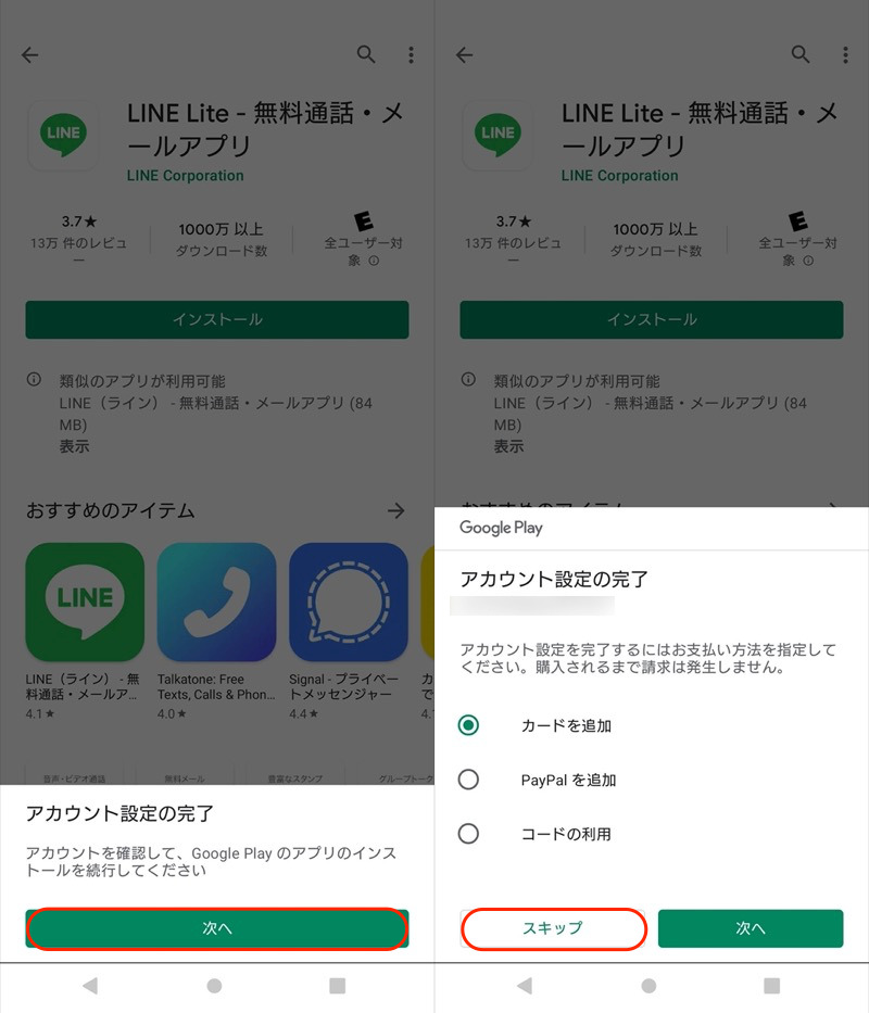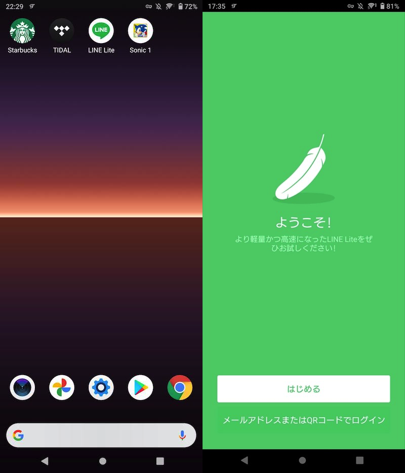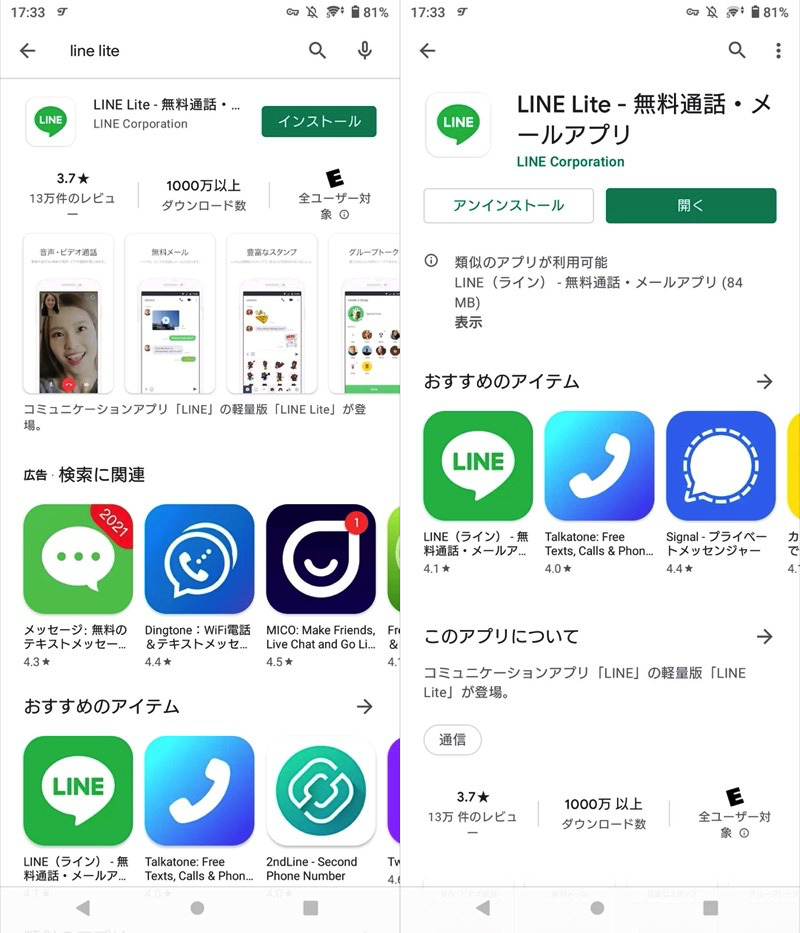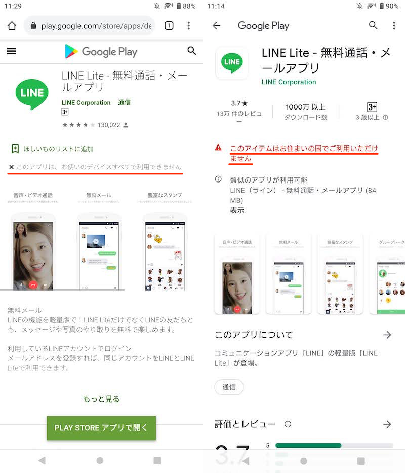 (左)我能够安装各种外国应用程序(右)启动 LINE Lite 的示例