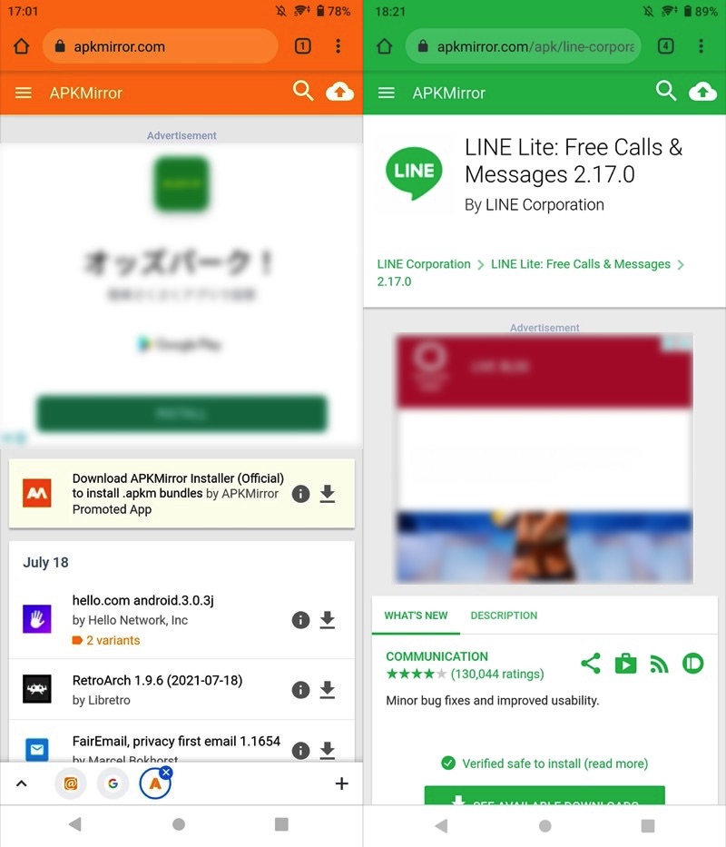 APK镜像示例。例如,您还可以下载 LINE Lite apk,该应用程序在日本不可用。
