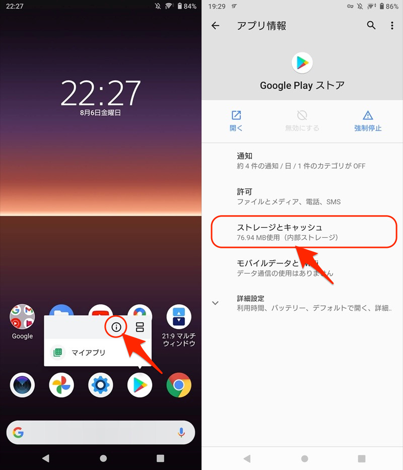 从 Google Play 的应用程序信息中打开“存储和缓存”。