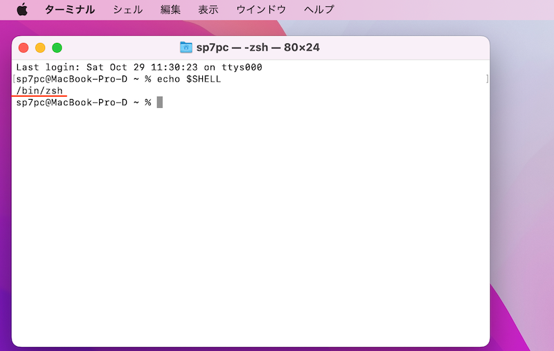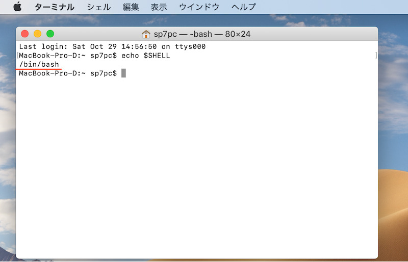 检查 Mac 上的默认 shell 环境是“zsh”还是“bash”。