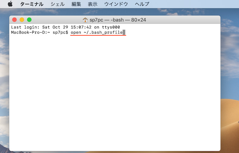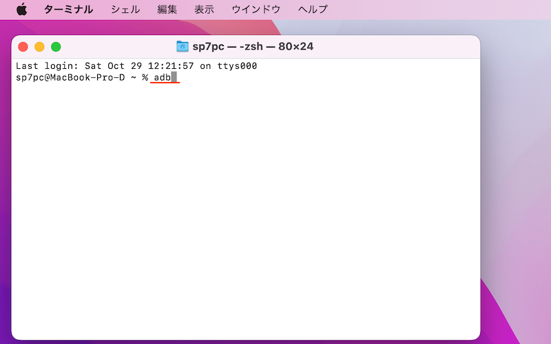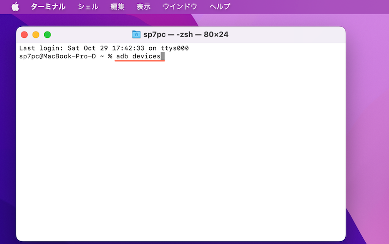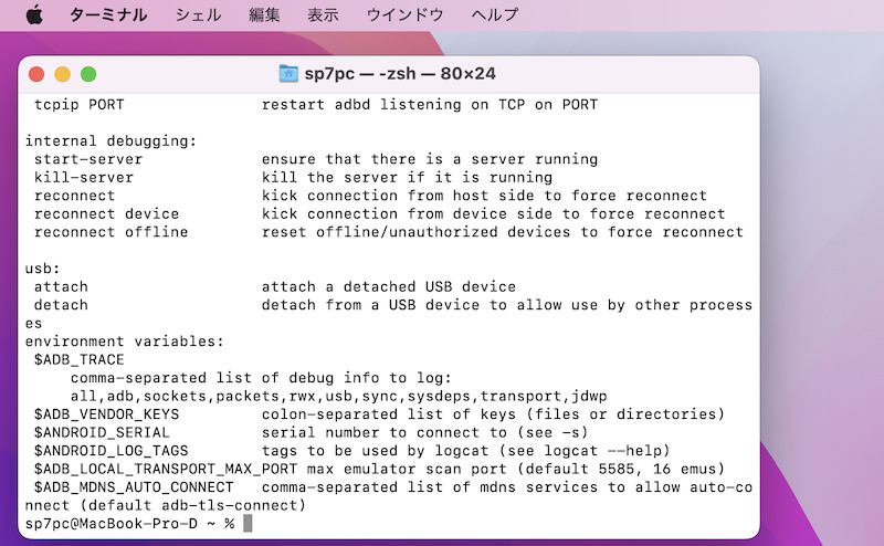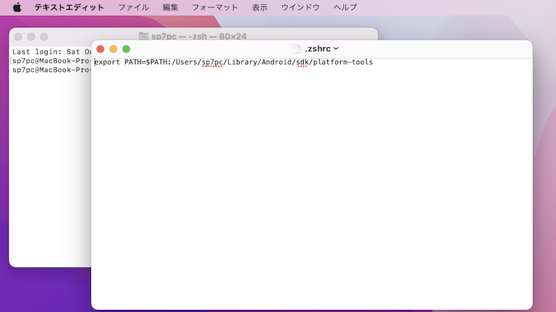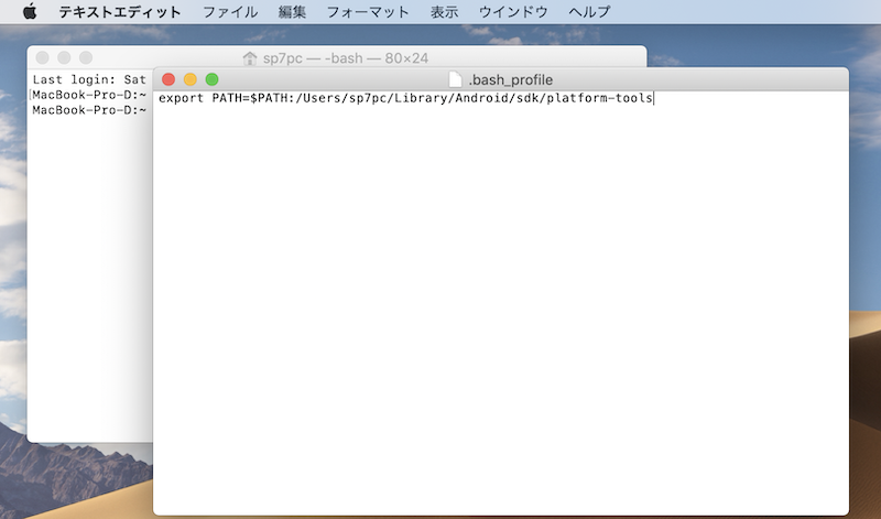 export PATH=$PATH:/Users/ユーザ名/Library/Android/sdk/platform-tools