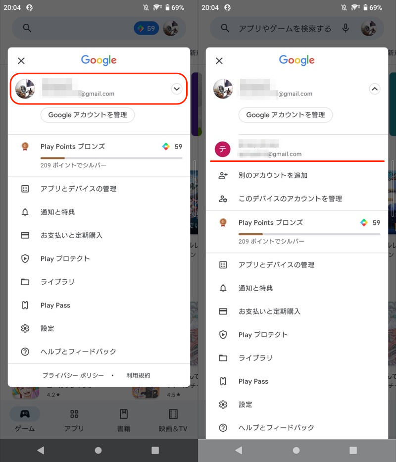检查您当前登录的帐户信息(左),并根据需要切换到其他帐户(右)。