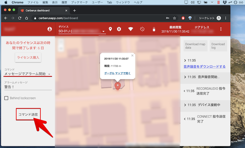 初步设置完成后,登录浏览器管理界面,使用命令“Start Alarm with message”。发送命令如果运行此程序,您可以在受监控的智能手机上发出紧急蜂鸣声。