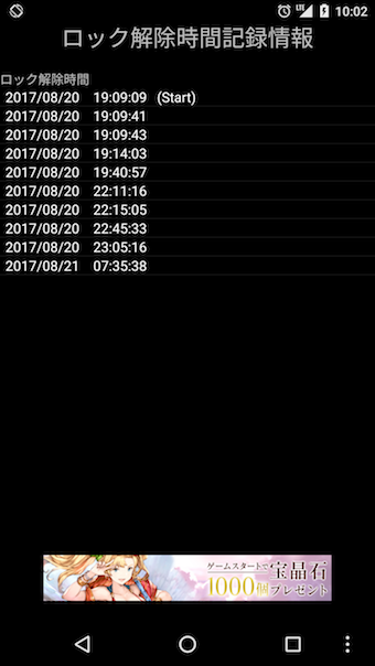 如上所述,它是一个方便的应用程序,可以自动记录解锁时间,不用担心被第三方发现,但另一方面,评论中有报告“即使没有停止监控也不会被记录”的问题,而我实际上已经确认了没有记录的空白期。