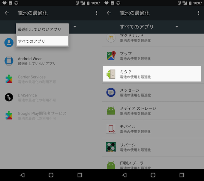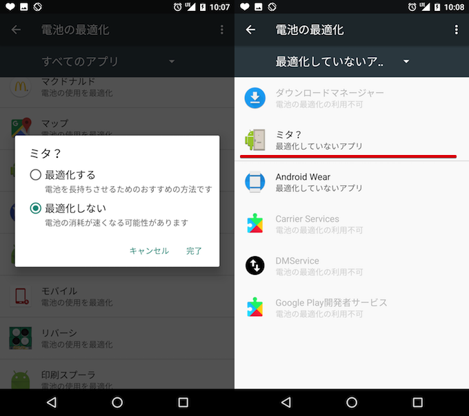 因此,作为针对这种现象的对策,我们将配置“Mita?(锁定监控)”应用程序,将其从标准 Android 省电目标应用程序中删除。