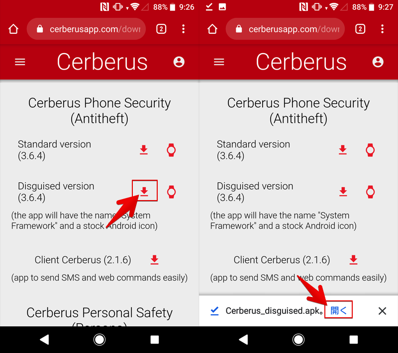 下面列出了两种类型的 Cerberus apk 文件,但如果您想秘密监控您的行踪,我们建议您使用后者。
