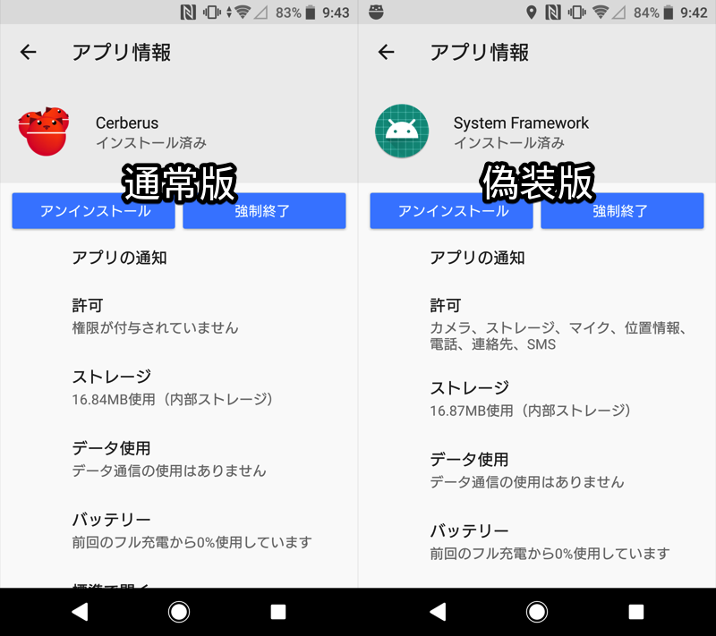 尽管这些应用程序的功能相同,但名称和图标存在差异,并且伪装版本由于融入了Android系统应用程序而很难被注意到。