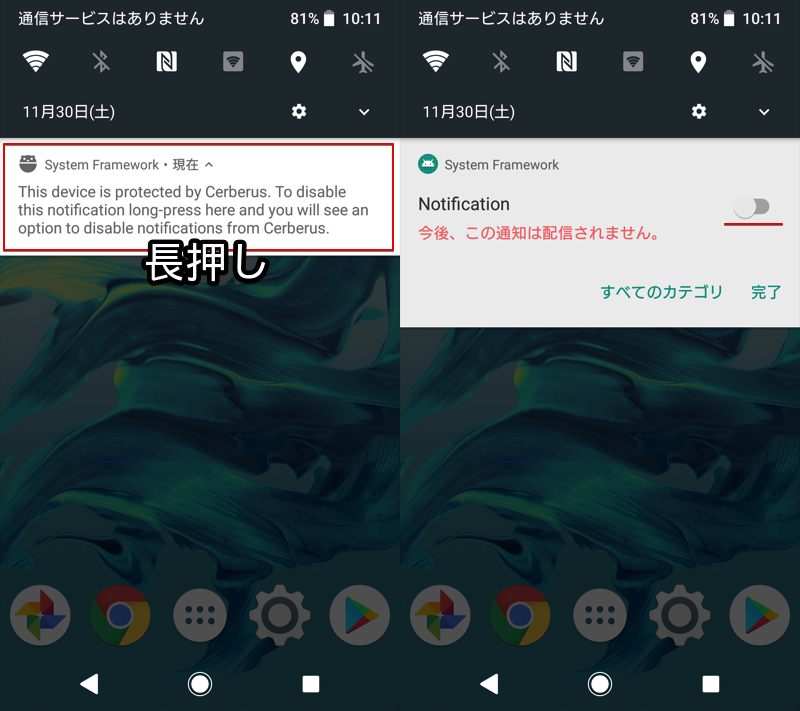 对于 Android 7.x 及更早版本,仅无法关闭“查找我的设备”的通知。
