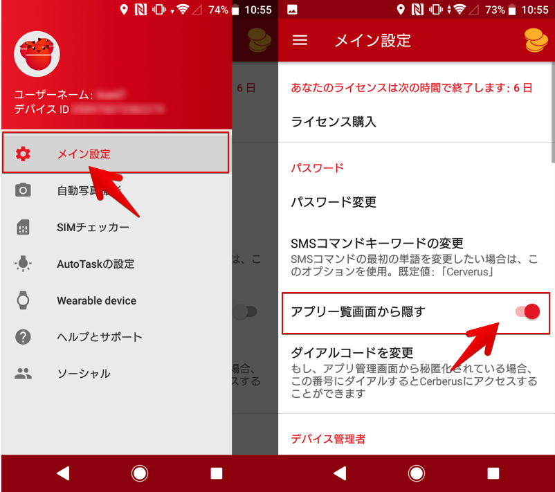 塞伯鲁斯主要设置捻从应用程序列表屏幕隐藏您可以通过启用隐藏图标。