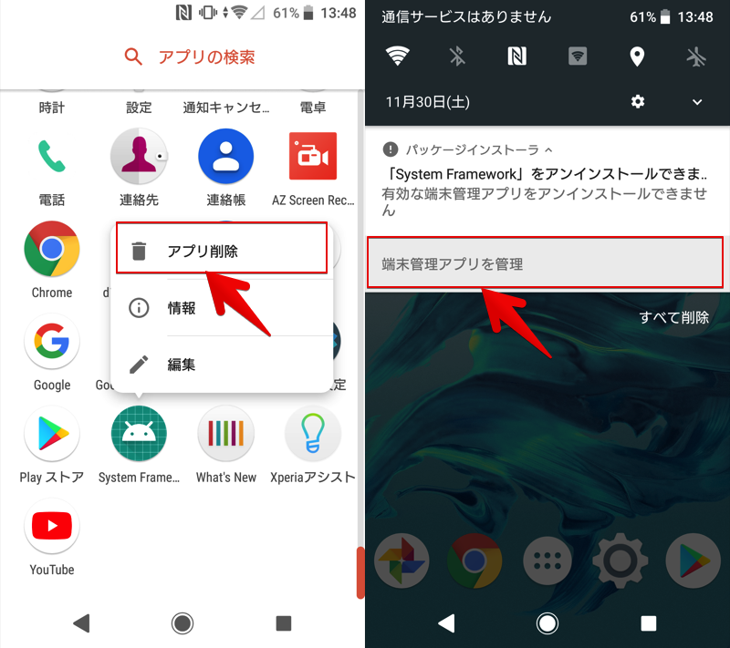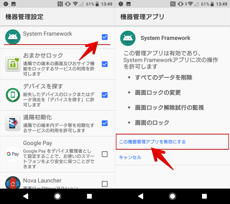 如果您已授予 Cerberus 作为“设备管理应用程序”权限,则可能会显示以下消息,并且您可能无法删除它。