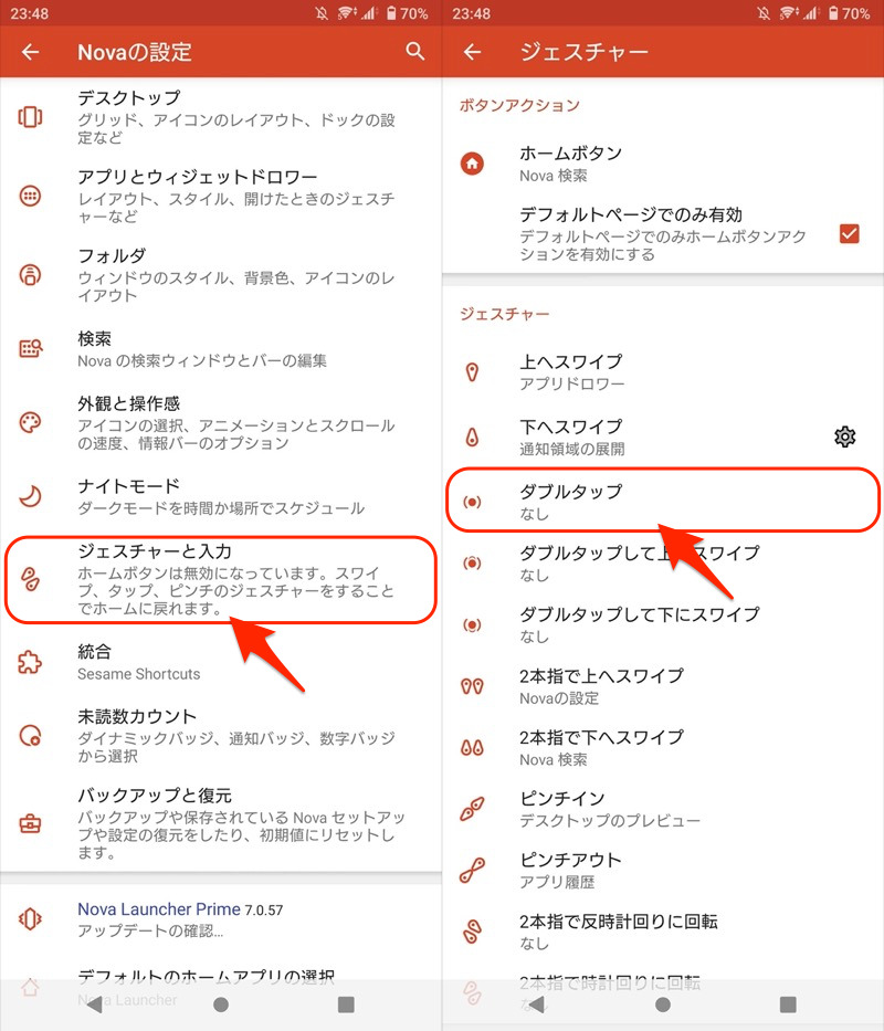 它仅适用于 Nova Launcher 运行的屏幕(= 主屏幕)。双击锁定屏幕或应用其他家庭应用程序是没有意义的。